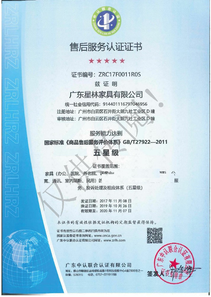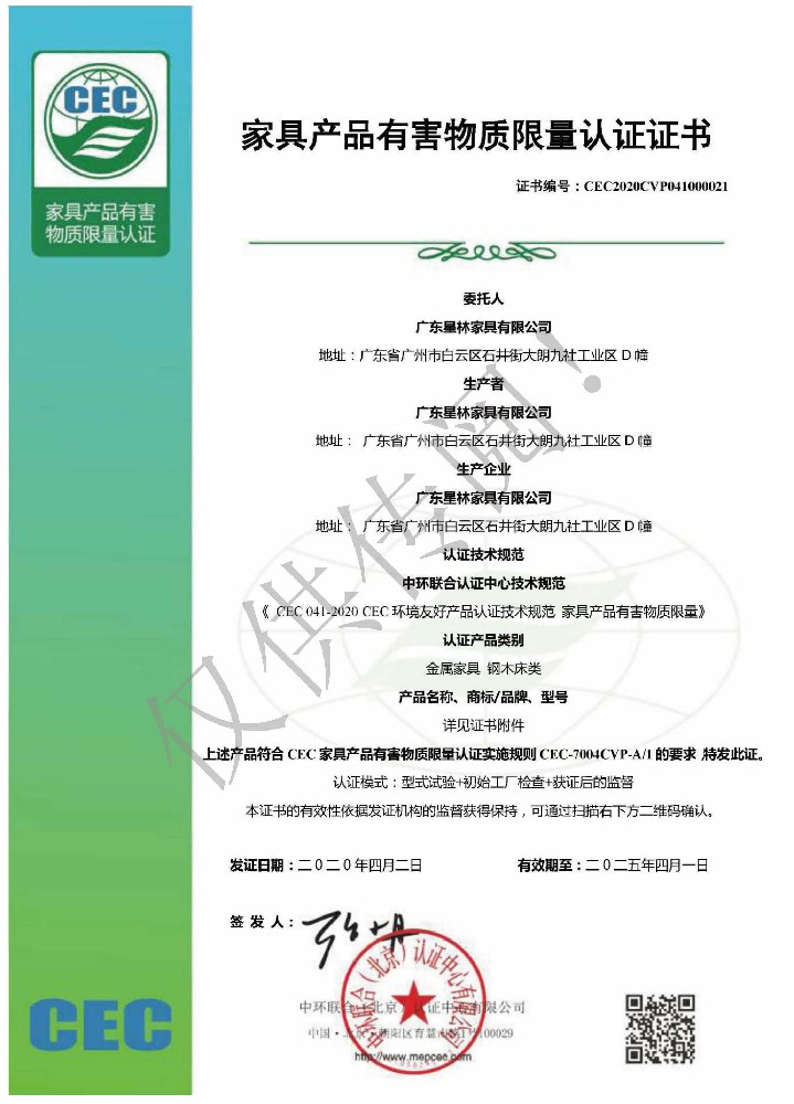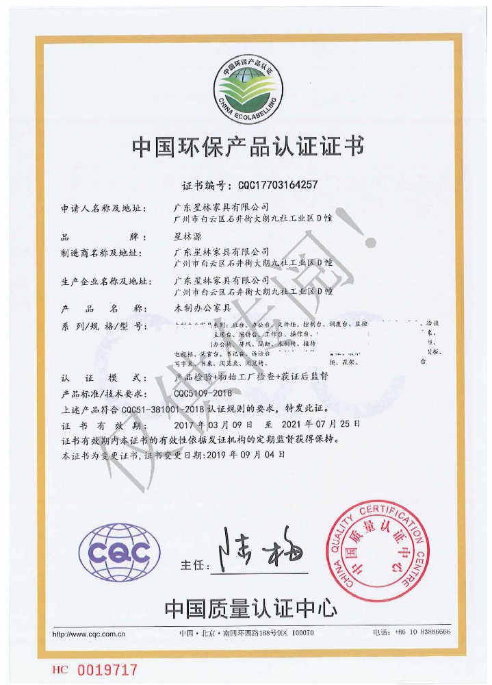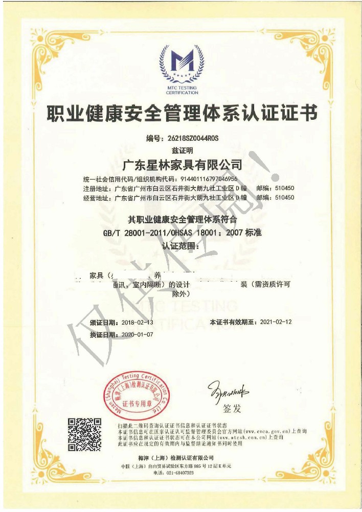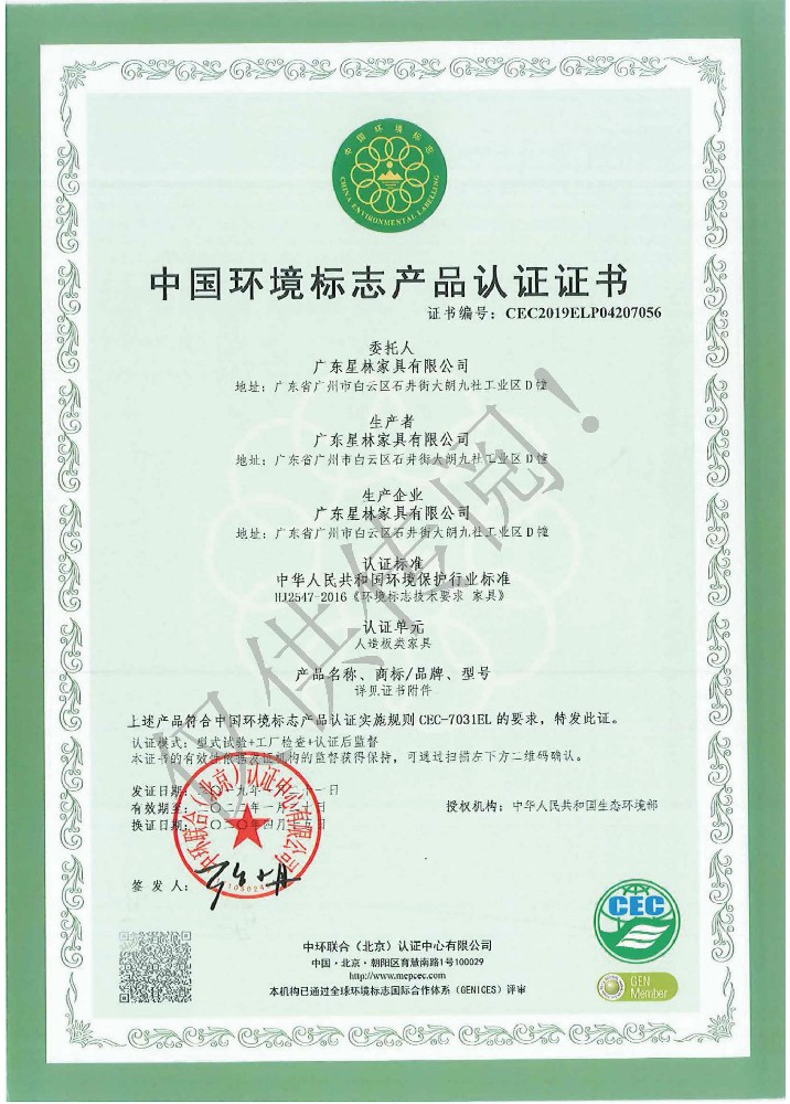 廣東星林家具有限公司創(chuàng)建于家具盛世之期,專業(yè)致力于辦公家具、醫(yī)療家具、養(yǎng)老家具的開發(fā)、設(shè)計(jì)、生產(chǎn)。公司率先通過ISO9001質(zhì)量管理體系認(rèn)證和ISO14001環(huán)境管理體系認(rèn)證及職業(yè)健康安全管理體系認(rèn)證,從而獲得了中環(huán)聯(lián)合(北京)認(rèn)證中心有限公司頒發(fā)的“中國環(huán)境標(biāo)志產(chǎn)品認(rèn)證證書(十環(huán)認(rèn)證)”等。